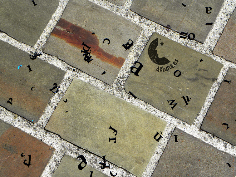 My personal imprint: rubber stamp, originally created to stamp my mark deluna.es on various media, small labels, envelopes, cards and on the streets … like graffiti.