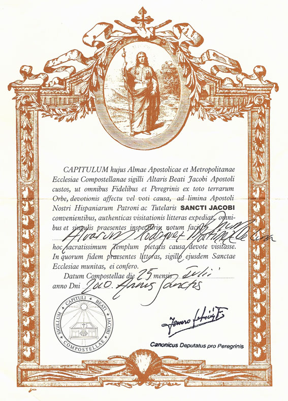 La Compostela de Álvaro. Camino de Santiago. Julio 2010.