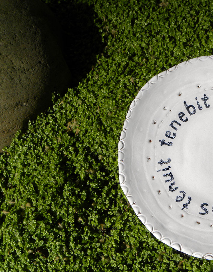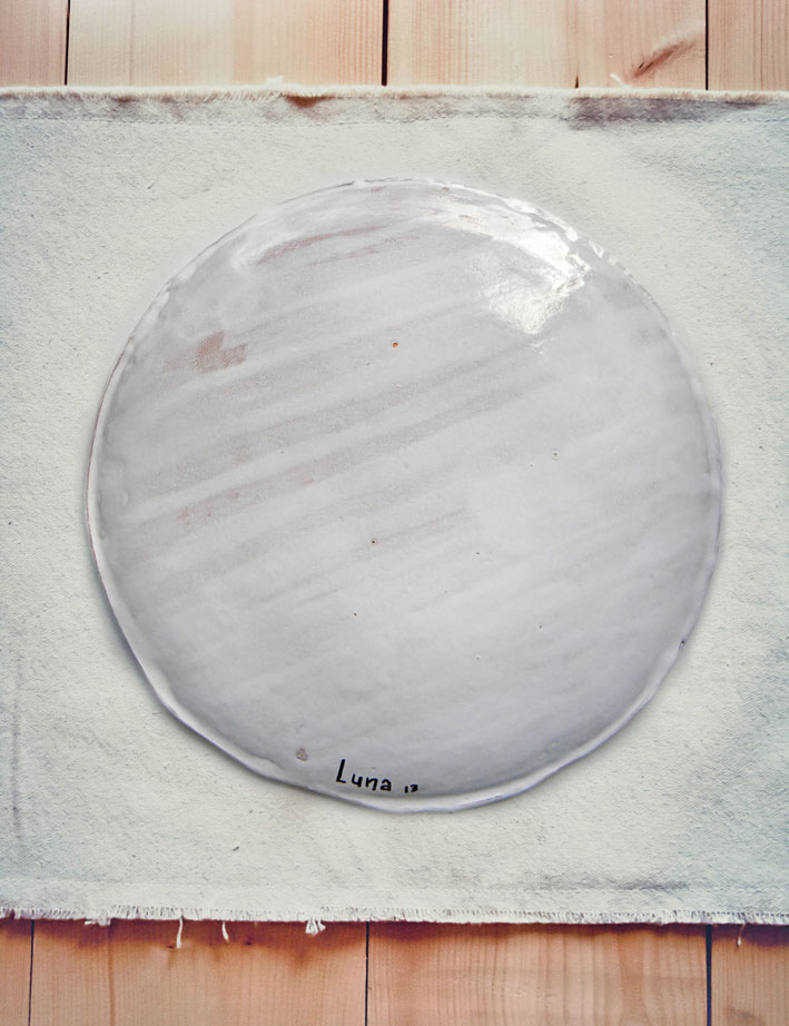No tengo la fórmula para encontrar el amor verdadero, así que os paso la fórmula VB-4 con la que he pintado el plato. Frita alcalina NS-20… 65. Caolin… 3. Ox. Estaño… 9. Cuarzo… 6. Creta… 5. Ox. Cinc… 5. Carbonato litio grano fino… 7. El texto está pintado a pincel con colorante decor negro.