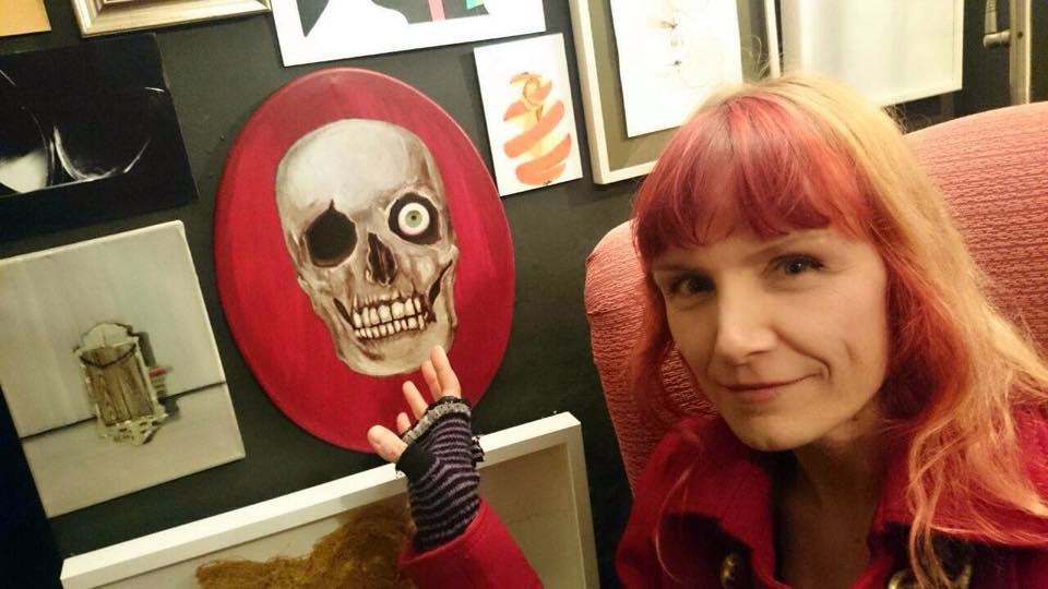 La artista Sonja Red junto a la obra ‘El reflejo de tu vanidad’ del galerista y artista bilbaíno Jorge R. Suberviola.