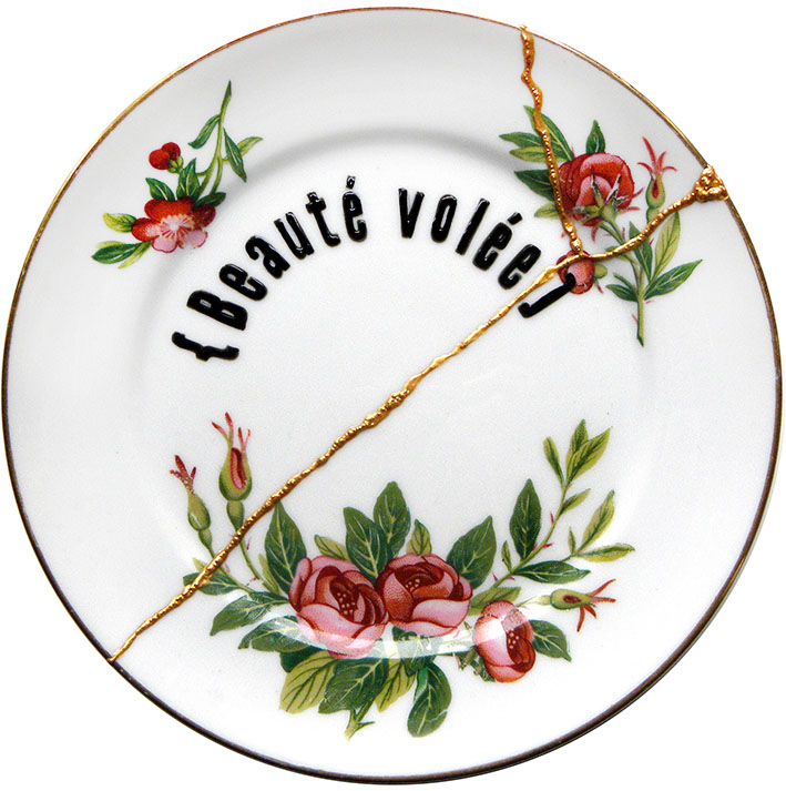 Mi aportación personal ‘Beauté Volée’ ¡cómo no!, una porcelana intervenida, es un tributo a la película de Bertolucci “Belleza Robada” y a la técnica tradicional japonesa, el kintsugi, o arte de reparar con oro, con un mensaje claro #losdefectostambiénsonbellos.