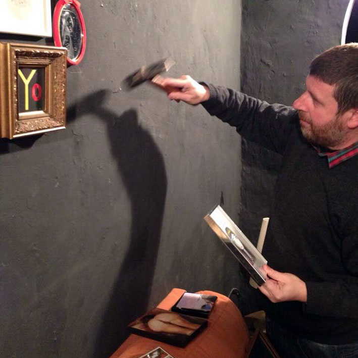 La Sala de Blas, espacio independiente, hizo una llamada a los artistas visuales a través de las redes sociales para participar en la exposición colectiva ‘El Espejo y la Belleza’. De esta manera tan especial, se festeja la finalización del cuarto año de vida de este singular espacio de arte situado en Archidona, provincia de Málaga. Blas, alma máter de esta convocatoria, en plena faena.