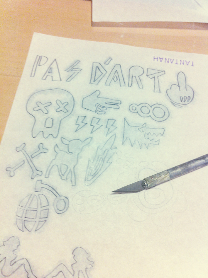 Ane nos había marcado unas premisas previas, los participantes teníamos que ir con una idea, materializarlo en un dibujo y a lo largo del taller lo adaptamos al soporte.