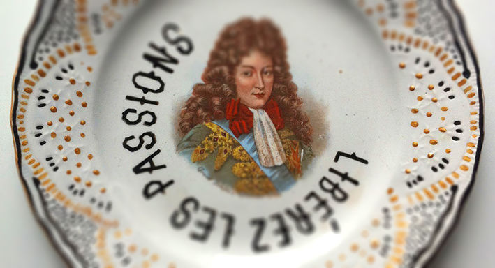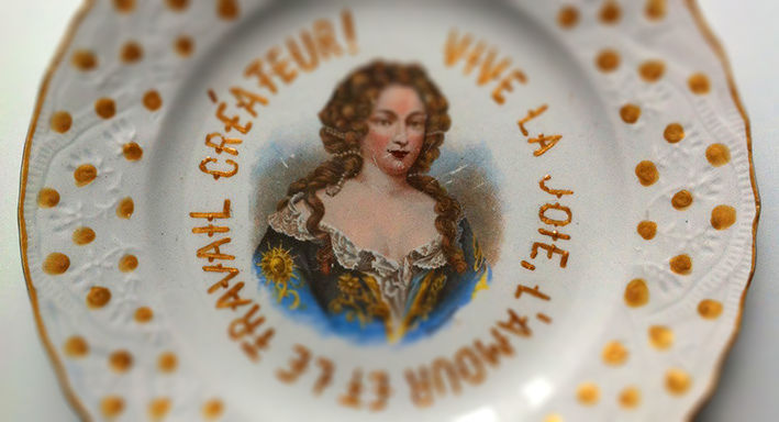 En esta serie, la inspiración se mezcla con la investigación y la documentación. La verdadera esencia de estas piezas radica en su descontextualización, los platos con imágenes de reyes y cortesanas predecesores de Luis XVI y anteriores a la revolución francesa son intervenidos con frases de mayo del 68. Belleza vs ironía, monarquía vs revolución, fragilidad del continente vs consistencia del contenido, conflictos sociales y políticos vs la razón, la igualdad y la libertad…