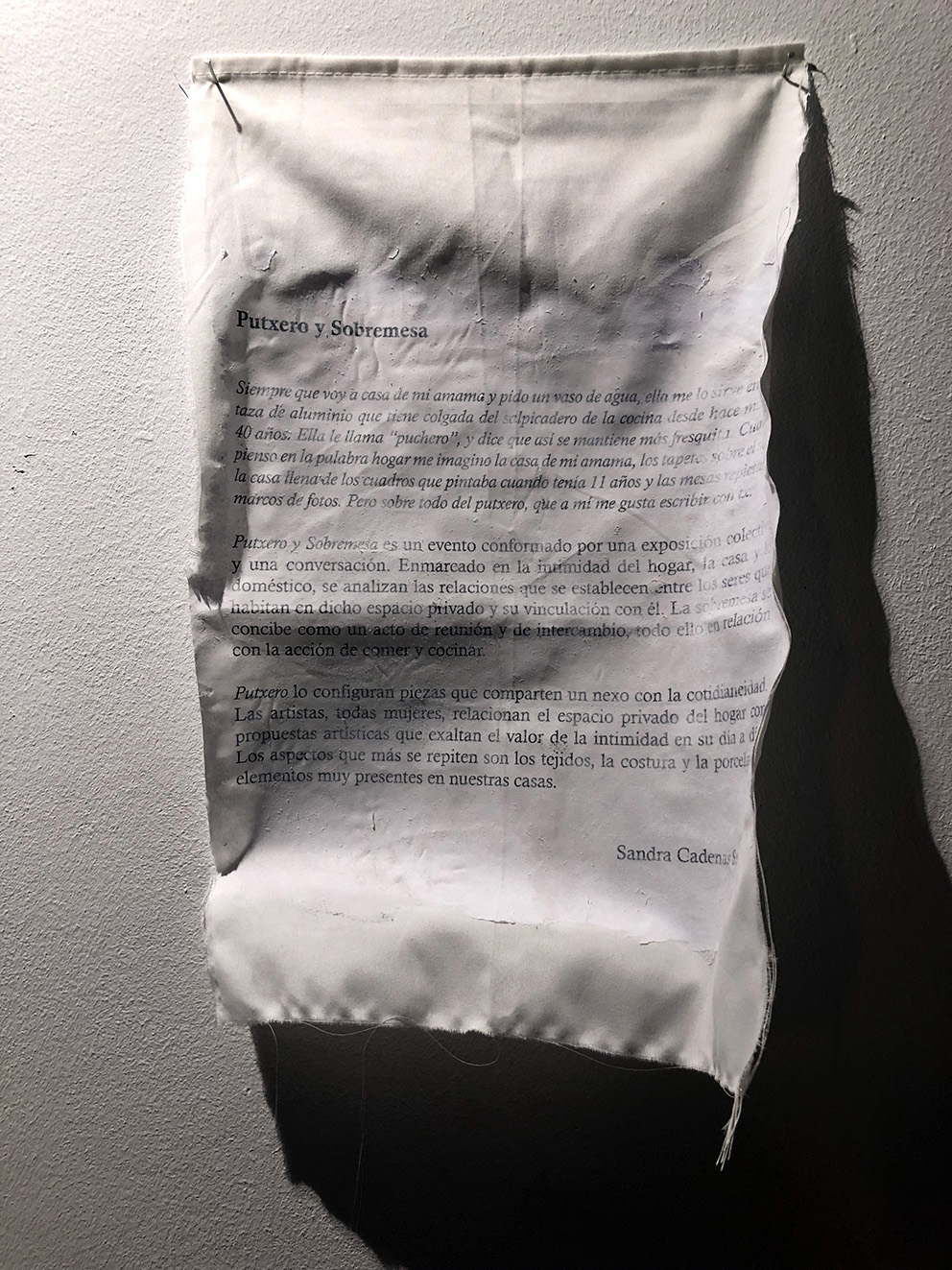 Putxero egunerokotasunagaz zerikusia daukien piezek osatzen dabe. Artistek etxearen eremu pribatua intimitatea azaleratzen daben obrekaz aztertu egiten dabe. Erakusketan agertzen diran elementu nagusienak oihalak, josketa eta portzelana dira, egunero etxean ikusten doguzan gauzak izanik».