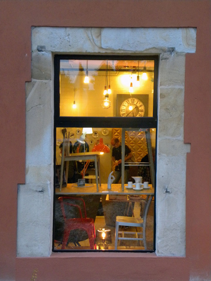 La primera impresión cuando traspasas la puerta de ‘cuandodavidllegóadurango’ es que entras en un cuento, un mundo mágico lleno de muebles y objetos curiosos. Y en el particular universo de David, sus orígenes portugueses tienen mucho que ver con su pasión por la cerámica. Platos irreverentes, platos poéticos, desperdigados, reunidos en bandada, en jaulas, en cajas de madera, inundan las paredes. Con su teatral manera de iluminar, una magia especial envuelve al visitante. El espacio está originalmente diseñado con una esmerada atención por los detalles ‘descuidados’.